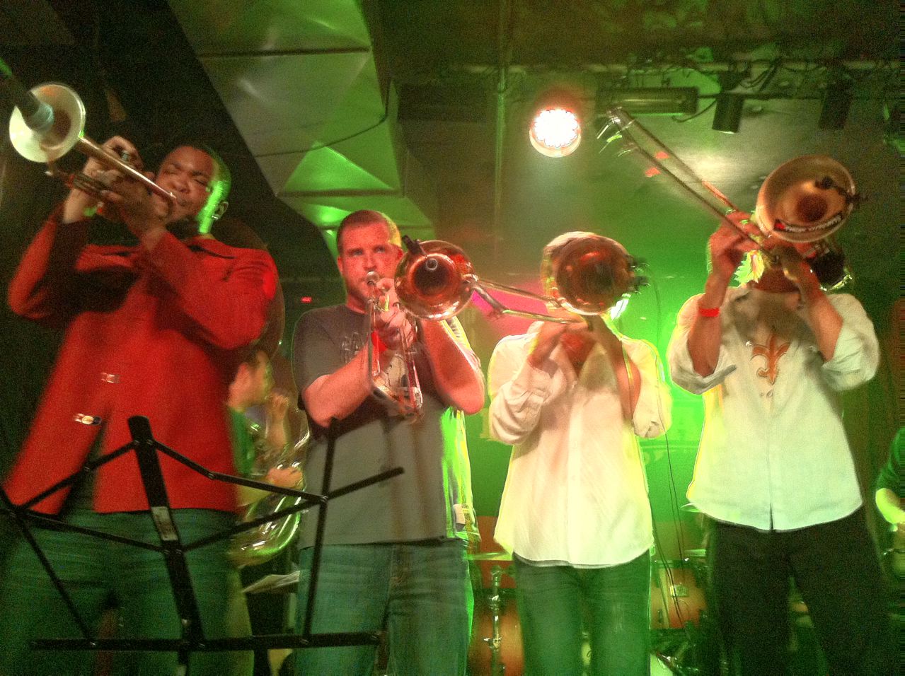 Nate Wilson on keys, Joe Scatassa and Asher Rosssat on Trombones and Scott Bourgeois on Sax for Yer Blues