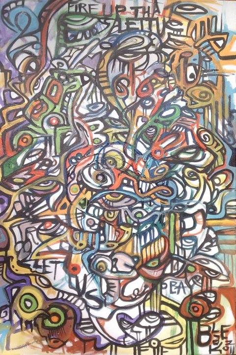 This monster art piece began at the start of the festival and was finished by the second day. It was also the wall that defined the vendor area's beginning. I tried repeatedly to help them spray paint but alas...