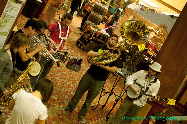 In their song “Sex Monster,” I caught at least 15 songs beginning with Bloodhound Gang‘s “Discovery Channel” to Lady Gaga‘s “Bad Romance” to the Talking Heads‘ “Psycho Killer”. Then there was a mix of a Michael Franti‘s “Ganja Babe”, Keller William‘s “Boob Job” and a David Pollard song. After that insanity, they went into a swing-y Ella Fitzgerald tune. It was all over the map.