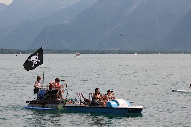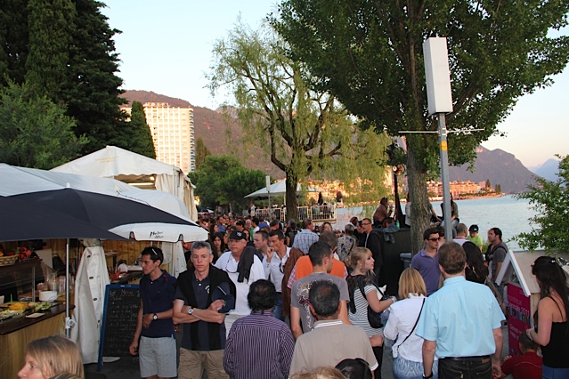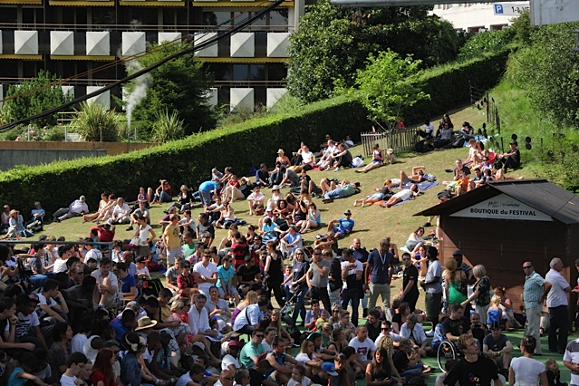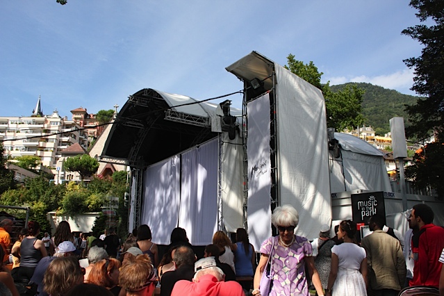 The beginnings of an audience forming for the music start on Thursday! Just look at that stunning blue sky and green mountain backdrop. Perfect weather also!