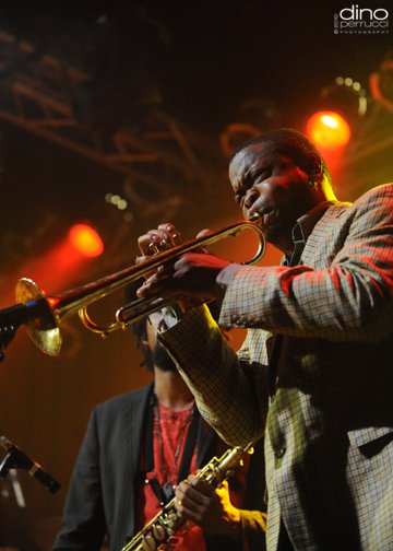 Alan Evans handled the vocals for the Stevie Wonder cover, “Jesus Children of America,” while his feel-good drumming kept the beat. “The Dump” is actually a Lettuce tune off their first album, Outta Here, which really brought the crowd up. However, it was when Marco Benevento came out for “The ‘In’ Crowd,” a song composed in 1964 largely for pianos and horns, when the stage might as well have caught on fire from the heat. Marco laid down a beautiful melody of keys while each member of the horn section soloed starting with James Casey, to Ryan Zoidis and then Eric Bloom. Bloom’s trumpet solo was reminiscent of Dizzy Gillespie and Casey brought it all home. At one point, Alan Evans pointed out that Marco was wearing a Soulive shirt and the crowd cheered.