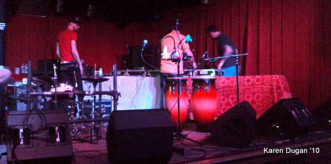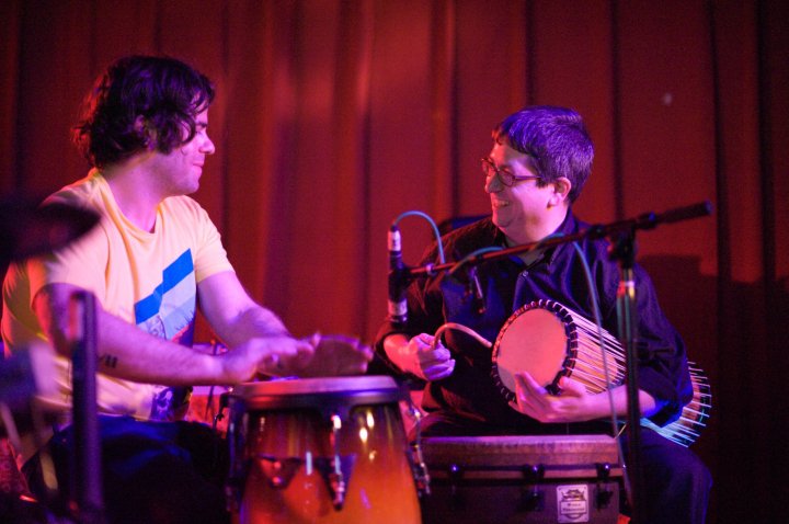 Throughout the performance, artists rotated instruments. At one point Ed had left his machines to go play with Mikey’s tables. Boys and their toys! Such a beauty about improvisation. The musicians possibly had on bigger smiles then the audience. They were having FUN! I felt it, I saw it, and I heard it. To me, what was happening on that stage was the essence of live music.