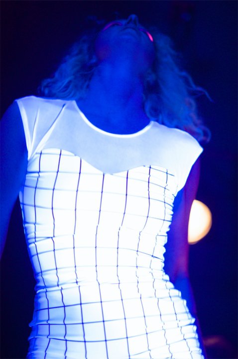 As Ed and Mike’y were throwing us the “getdown” music, VJ Mima was flashing the screen with black and white images that look to have been drawn with pencil and had come to life. All the while, Zoe Wilder would come and go from the stage as she pleased, dancing for the audience, or perhaps just herself, in any way the music moved her. I imagined what her Wonderland must be like up there as the black lights reflecting off her vivid outfit and her pink eyes lit up the stage.