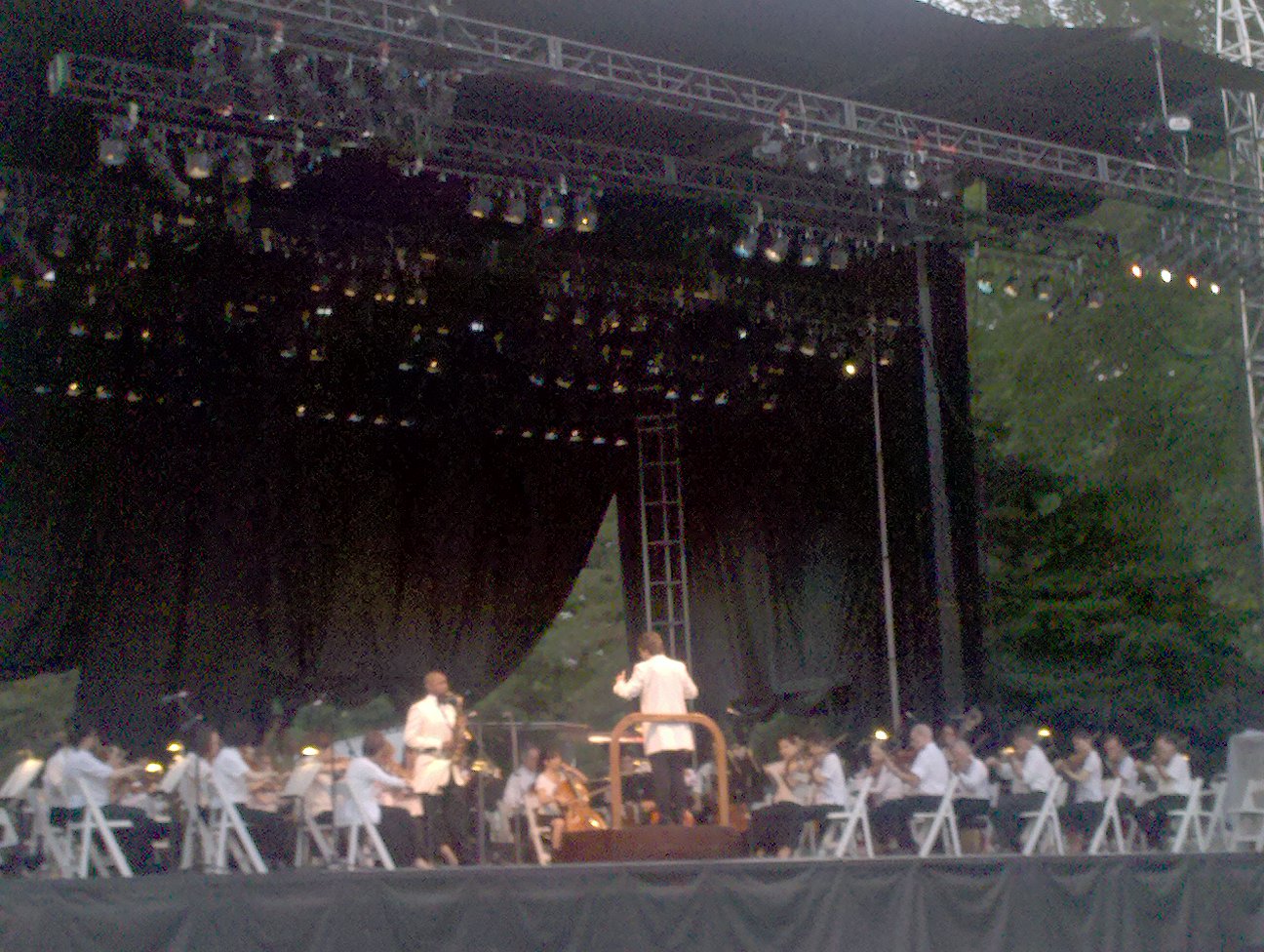 It was pouring rain all day. Working for the New York City Department of Parks and Recreation, my office is situated near the Special Events office whose phones were ringing off the hook from patrons wondering if the evening’s New York Philharmonic perfromance had been canceled. “We are on the phone with the National Weather Service but it won’t be called until the last minute.”