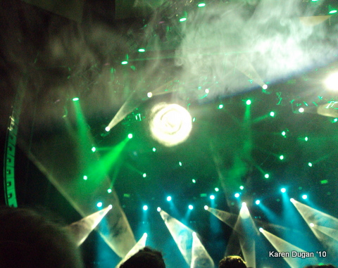 The light show was spectacular from back there.  The balls flying throughout the floor were so tiny but the whole scene looked so magnified, I was completely overwhelmed.  Sitting closer to the stage, you loose an ability to fully take in the light show.   You loose the magnitude of the venue because you are not looking behind you. Sometimes, people don’t get to experience the magnitude of the space, the energy backing up on all sides.