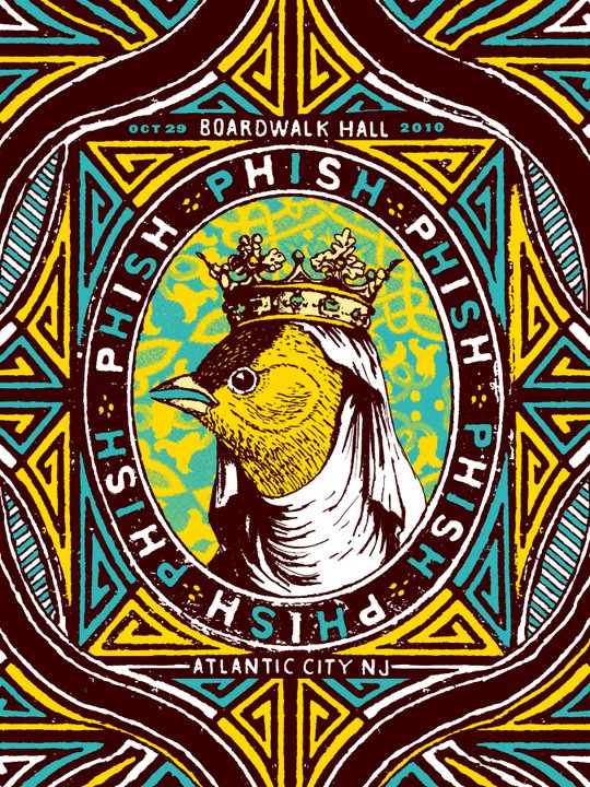 10/29 - Poster by Nate Duval © Phish 2010. New Jersey Eastern Goldfinch.