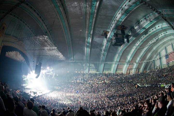I was pleasantly surprised to hear how lovely Page was right in front of my face.  Happy to hear the piano a little louder then the other instruments.  This song had such great piano amongst the chaos of the story.  First song in and I was silently questioning why I had boycotted them for so long.  The energy in the pavilion was sick.  Everyone was singing, jumping up and down, blowing up balloons and raging in the isles.  Sure, this happens at tons of shows where the fans are ridiculously fanatic but this was different.  This was extremely more intense.