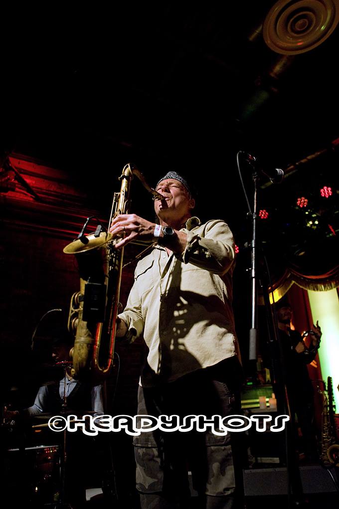 “On the final night, Zoidis kicked the horns in with a blistering alto run that brought the crowd to a frenzy. Later, Benny Bloom brought the chill factor with the hauntingly electronic trumpet solo. Solid tenor solos by James Casey complemented the more eccentric playing of Bill Evans. Maurice Brown silenced the crowd as his sublime trumpet evolved from the primordial to a force that brought Soulive, and the crowd, back in hard. Saunders Sermons added crisp, soulful vocals while the crowd got a bit closer to each other, sexy time at Bowlive.” ~ C.Z.